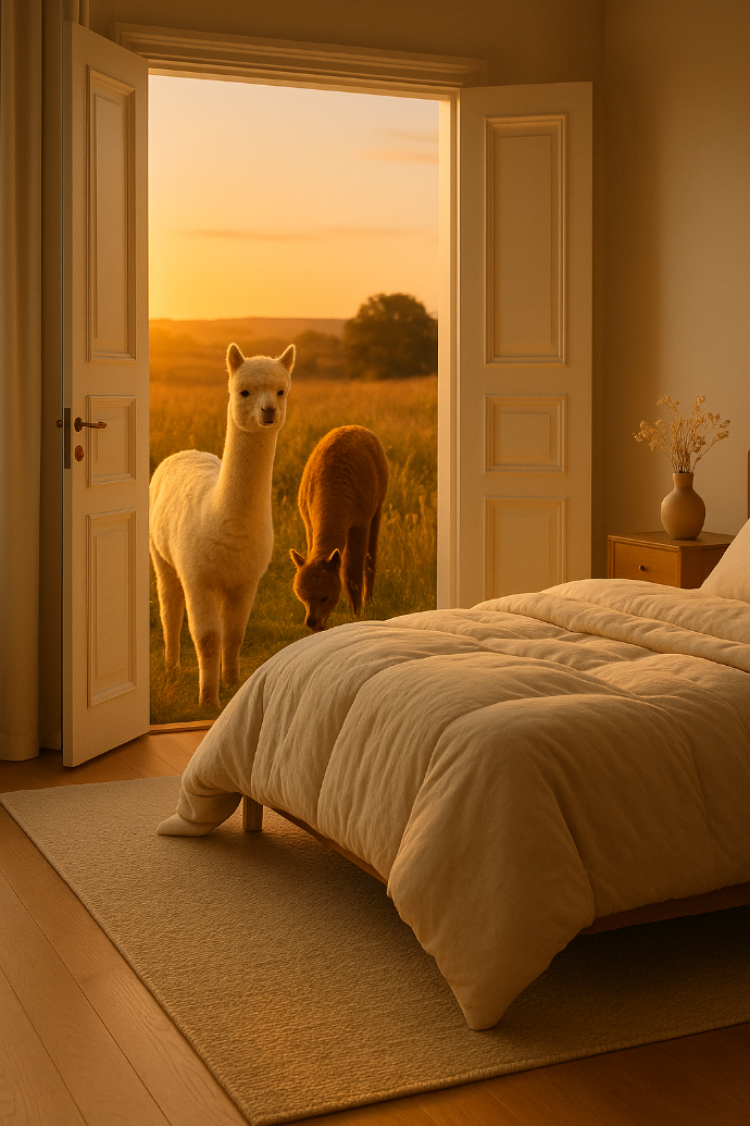 découvrez une literie d’exception en laine d’alpagas, issue de notre propre élevage. Naturellement douce, éthique et hypoallergénique, chaque pièce est pensée pour offrir un confort pur et durable.
